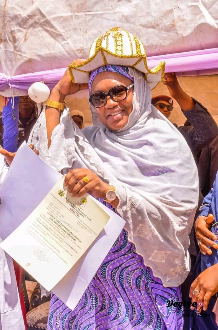 The First Lady of Zamfara State, Her Excellency, Huriyya Dauda Lawal has been conferred with the revered royal title of YAR GOJEN DANSADAU by His Royal Highness, the Sarkin Kudu Dansadau, Alhaji Garba Muhammad Sarkin Kudu Atu II, in recognition of her outstanding contributions to social development, women empowerment and humanitarian service.